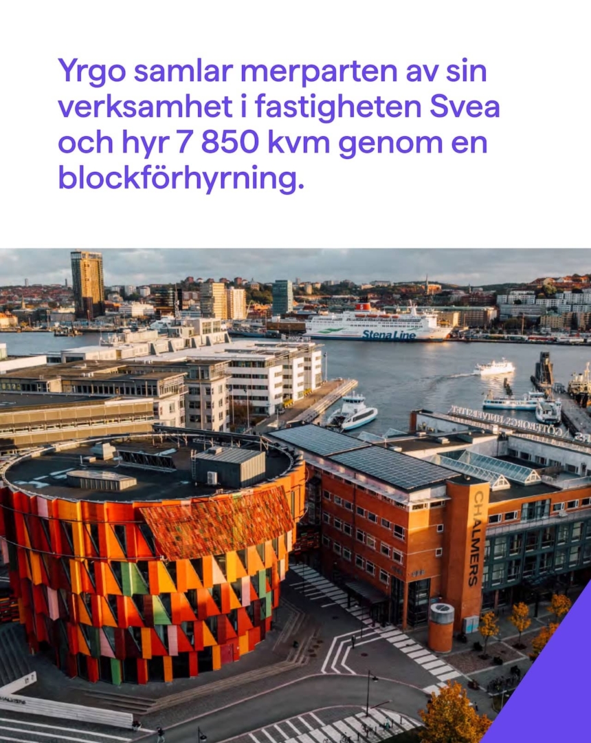 Det är med stor glädje vi fortsätter att välkomna nya hyresgäster till Chalmers nod Lindholmen. Från och med juli 2026 samlar Yrgo stora delar av sin verksamhet i vår fastighet Svea, och blockförhyr 7 850 kvm.