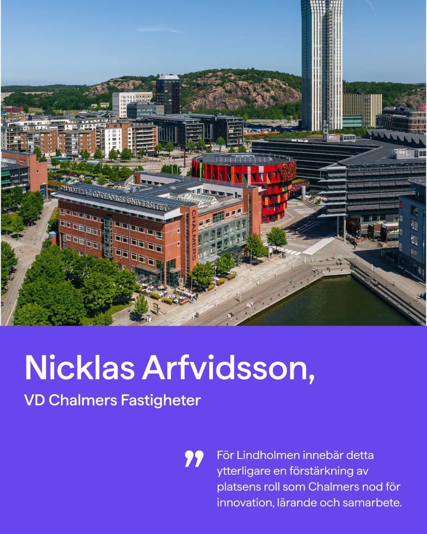 För Lindholmen innebär detta ytterligare en förstärkning av platsens roll som Chalmers nod för innovation, lärande och samarbete. Här möts etablerade företag, forskningsaktörer, offentliga verksamheter och framtidens kompetens. Det skapas ett sammanhang där idéer kan omsättas till verklighet – säger Nicklas Arfvidsson VD på Chalmers Fastigheter.